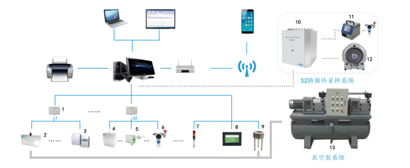 潔凈度多點(diǎn)式監(jiān)測系統(tǒng)為一套多點(diǎn)式實(shí)時監(jiān)控系統(tǒng),能夠?qū)崟r并且動態(tài)監(jiān)測各測量點(diǎn)的環(huán)境潔凈等級和溫濕度等,具有控制、報警、數(shù)據(jù)備份、查詢等功能。系統(tǒng)包括粒子計數(shù)器、多點(diǎn)